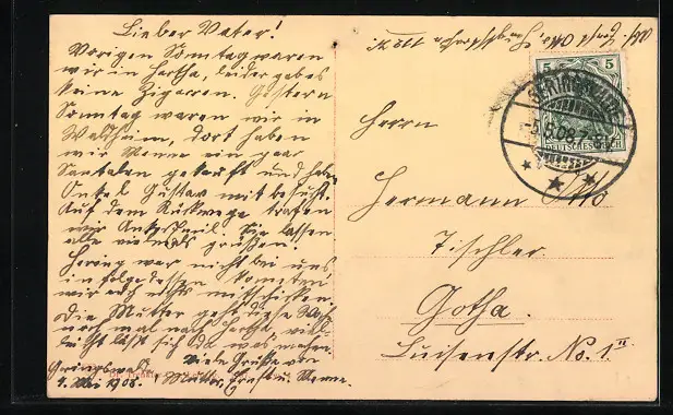 alte Ansichtskarte, gelaufen 1908, Stecknadellöcher oben mittig, guter Zustand
