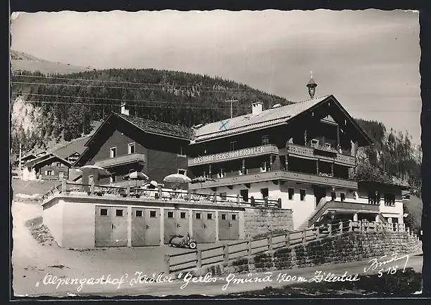 AK Gerlos-Gmünd /Zillertal, Strassenpartie am Alpengasthof Kröller