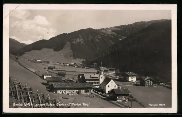 AK Gerlos-Zillertal, Ortsansicht mit Bergen