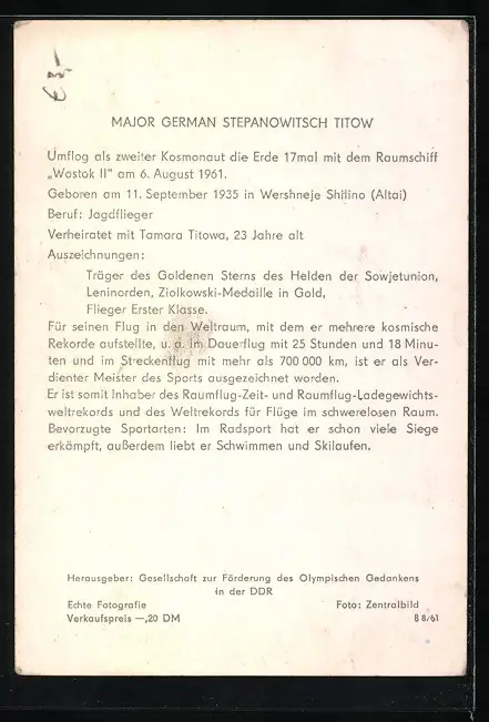 AK German Stepanowitsch Titow, 2. Kosmonaut der UDSSR-Raumfahrt