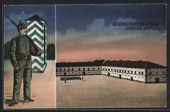 AK Germersheim, Kaserne Stengel, Wache mit Häuschen