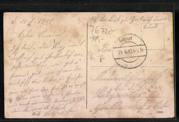 alte Ansichtskarte, gelaufen als Feldpost 1917, Eckknick unten li., guter Zustand