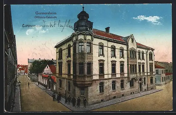 AK Germersheim, Offiziers-Gebäude mit Strasse