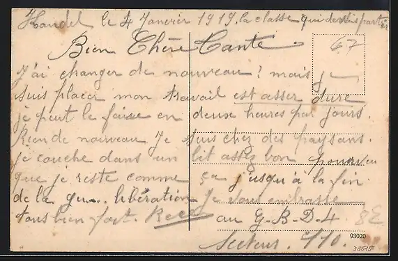 Personenbezogene Daten auf der Rückseite der Karte wurden durch blauen Textmarker unkenntlich gemacht. Die blauen Stellen sind auf die Vorderseite durchgeweicht und wirken sich negativ auf das Postkartenfoto aus