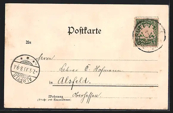 alte Ansichtskarte, gelaufen 1899, Eckknick re. unten, guter Zustand