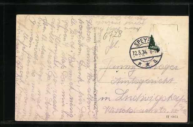 alte Ansichtskarte, gelaufen 1934, Briefmarke entfernt, guter Zustand