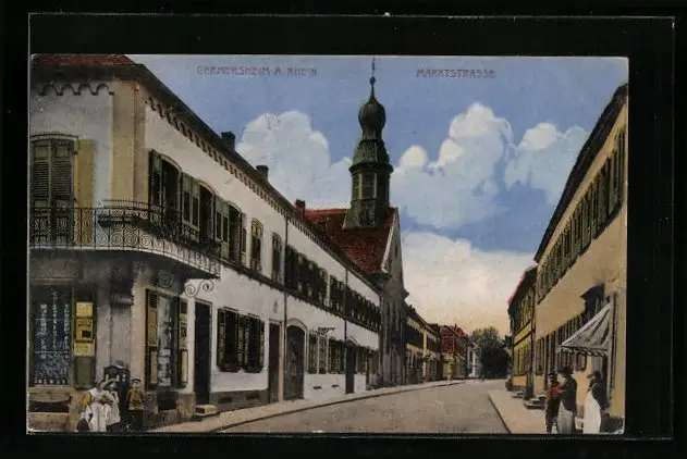 AK Germersheim a. Rhein, Marktstrasse mit Passanten