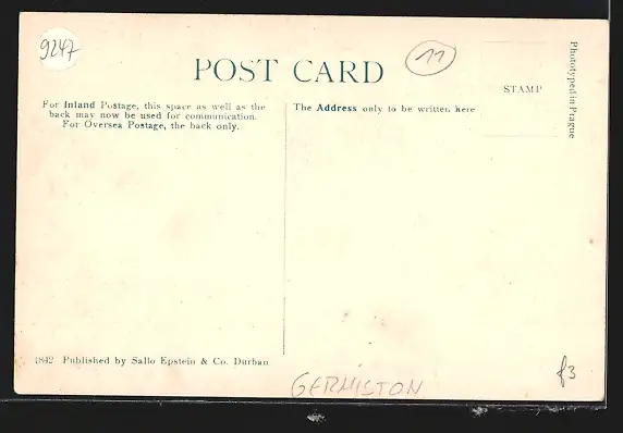 Personenbezogene Daten auf der Rückseite der Karte wurden durch blauen Textmarker unkenntlich gemacht. Die blauen Stellen sind auf die Vorderseite durchgeweicht und wirken sich negativ auf das Postkartenfoto aus