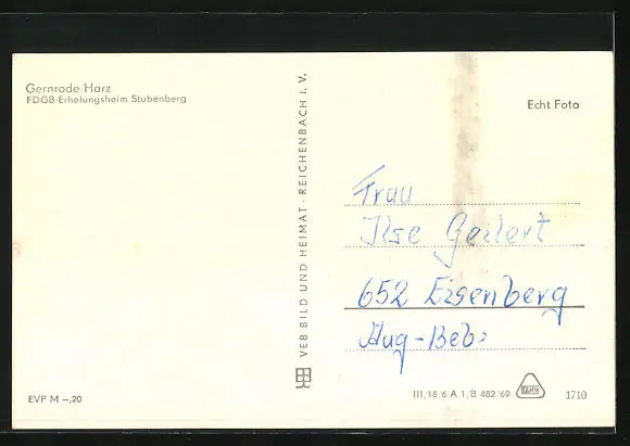 AK Gernrode /Harz, FDGB-Erholungsheim Stubenberg