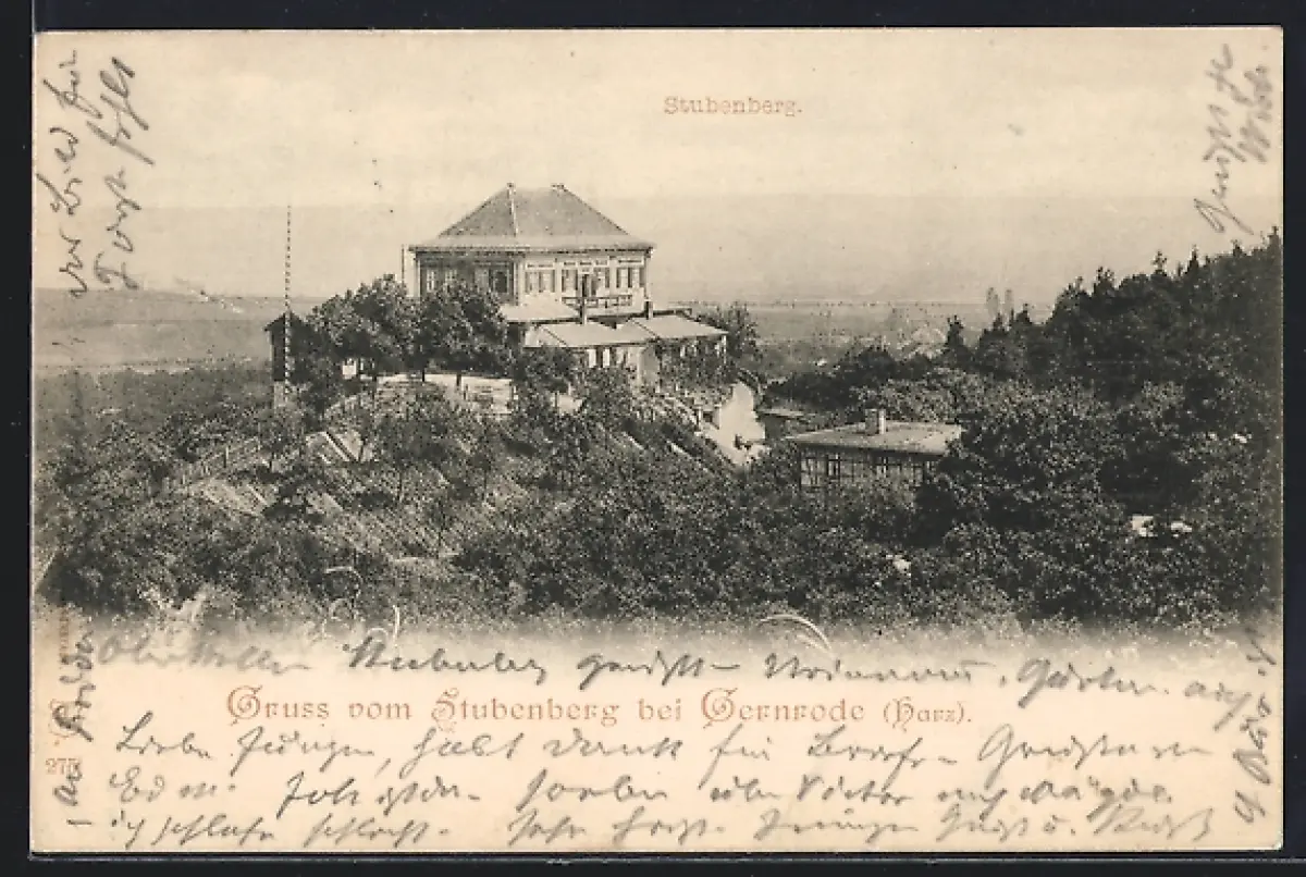 AK Gernrode / Harz, Hotel Stubenberg mit Blick ins Tal