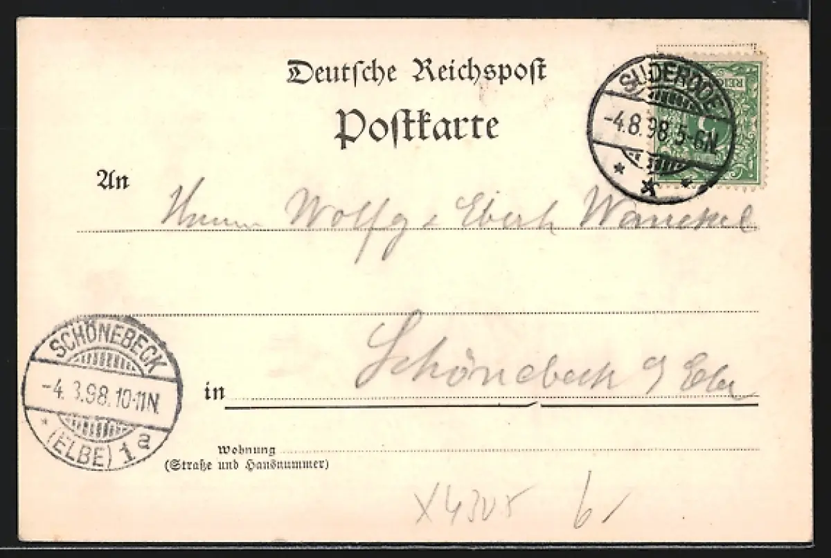 alte Ansichtskarte, gelaufen 1898, guter Zustand