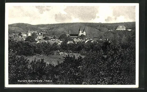 AK Gernrode /Harz, Panorama mit Kirche