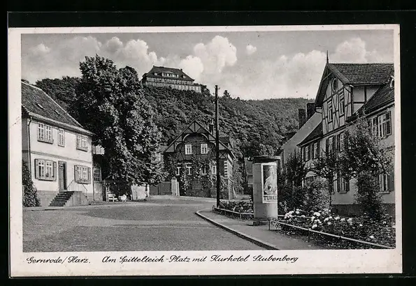 AK Gernrode /Harz, Spittelteich-Platz mit Kurhotel Stubenberg