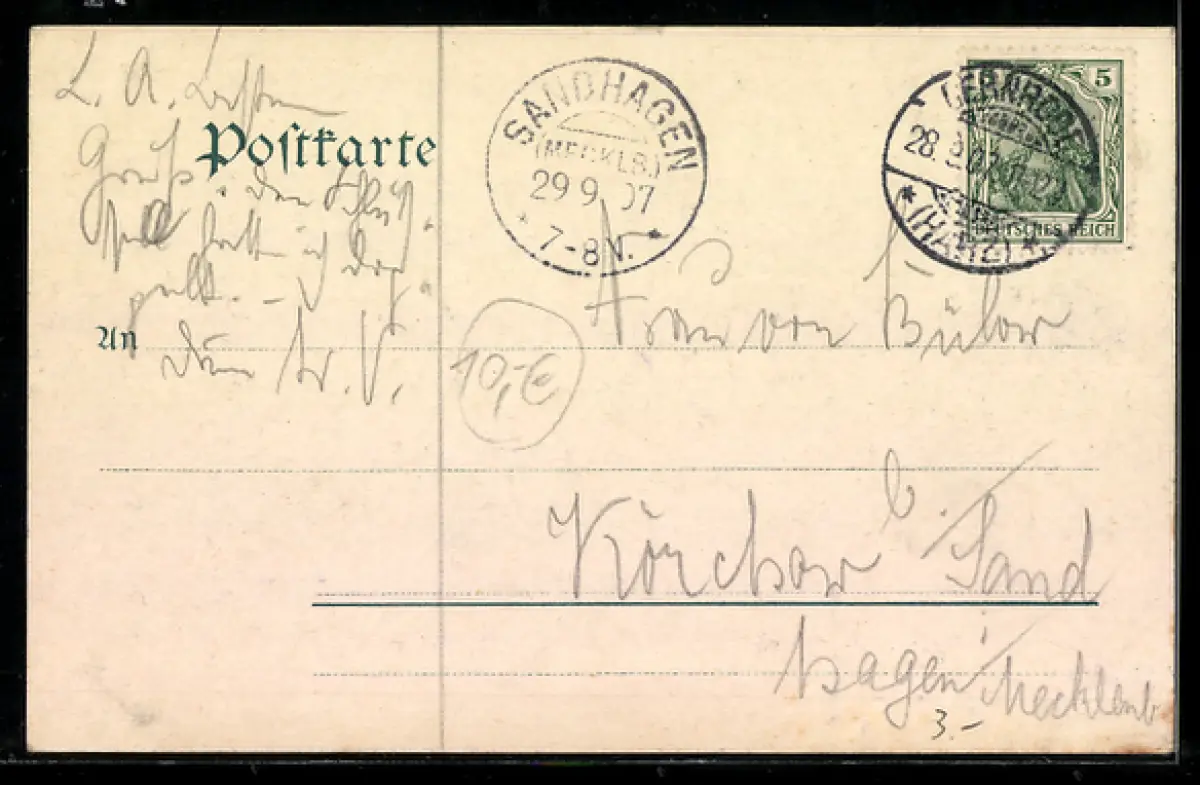 alte Ansichtskarte, gelaufen 1907, Eckknicke re. oben, Albumspuren, guter Zustand