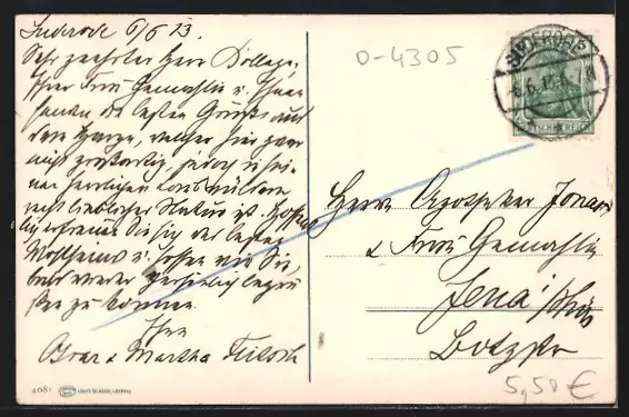 alte Ansichtskarte, gelaufen 1913, Stempelspur, guter Zustand