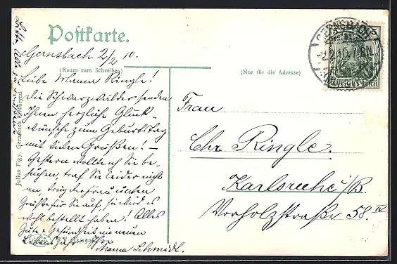 alte Ansichtskarte, gelaufen 1910, guter Zustand