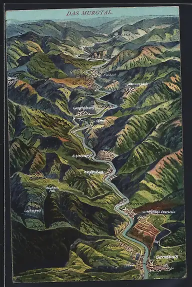 AK Gernsbach /Murgtal, Ortsansicht mit Blick das Murgtal hinauf