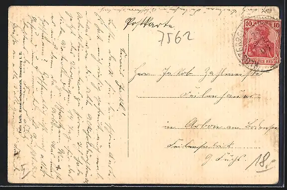 alte Ansichtskarte, gelaufen 1908, Eckknick li. oben, guter Zustand