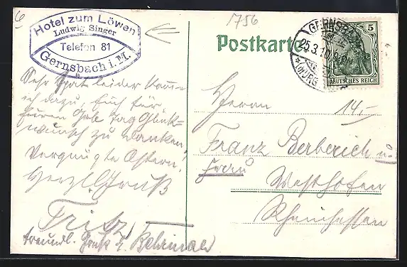 alte Ansichtskarte, gelaufen 1910, guter Zustand