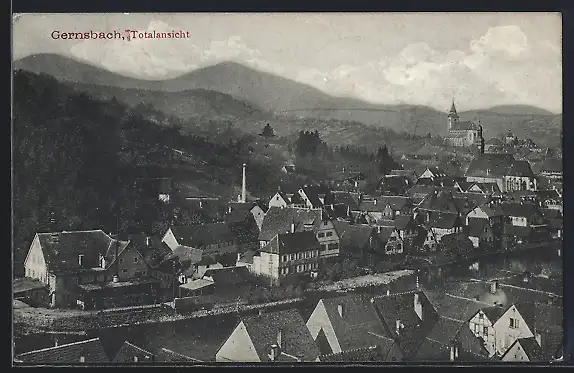 AK Gernsbach, Totalansicht von einer Anhöhe aus