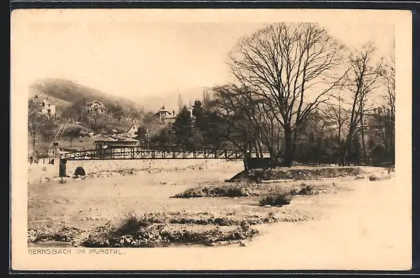 AK Gernsbach im Murgtal, Uferpartie mit Brücke