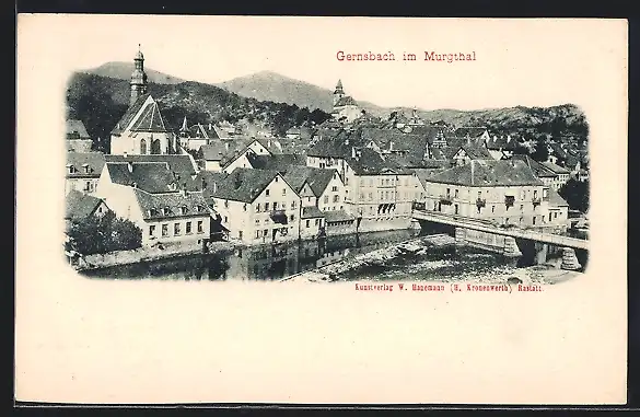 AK Gernsbach im Murgthal, Ortsansicht mit Kirche