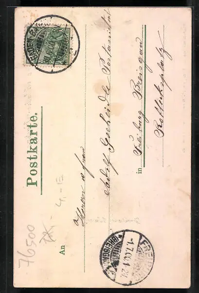 alte Ansichtskarte, gelaufen 1900, guter Zustand