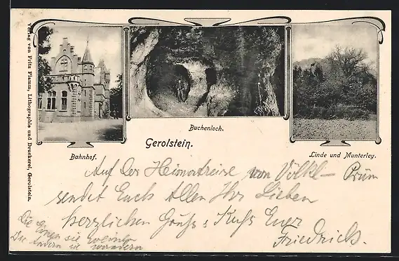 AK Gerolstein, Bahnhof, Burchenloch, Linde und Munterley