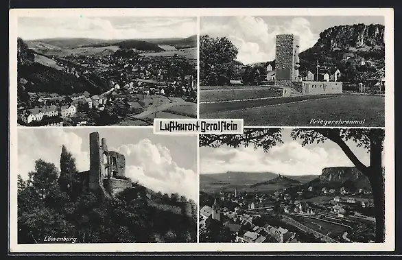 AK Gerolstein, Kriegerdenkmal, Löwenburg, Gesamtansicht
