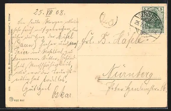 alte Ansichtskarte, gelaufen 1908, guter Zustand