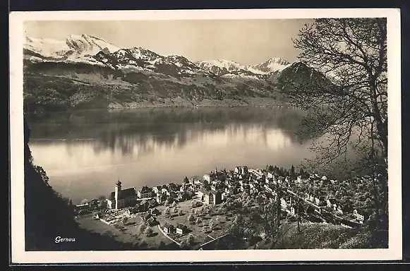 AK Gersau, Gesamtansicht mit See und Bergpanorama