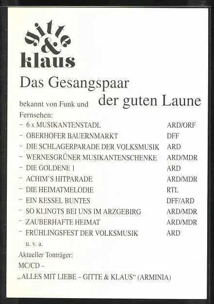 AK Gesangspaar Gitte & Klaus in Tracht