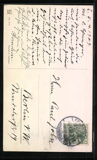alte Ansichtskarte, gelaufen 1909, Abriebspuren Rand, guter Zustand