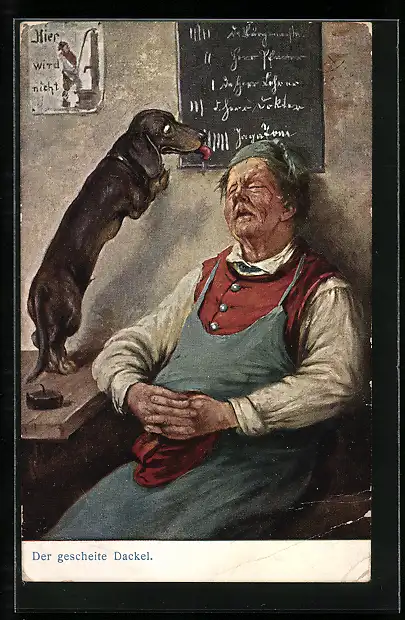 AK Gescheiter Dackel leckt die Zeche seines Herrchens von der Tafel