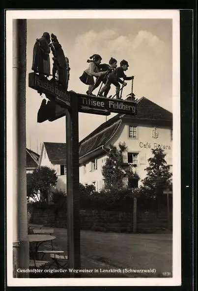AK Geschnitzter origineller Wegweiser in Lenzkirch (Schwarzwald)
