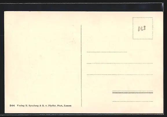 Personenbezogene Daten auf der Rückseite der Karte wurden durch blauen Textmarker unkenntlich gemacht. Die blauen Stellen sind auf die Vorderseite durchgeweicht und wirken sich negativ auf das Postkartenfoto aus