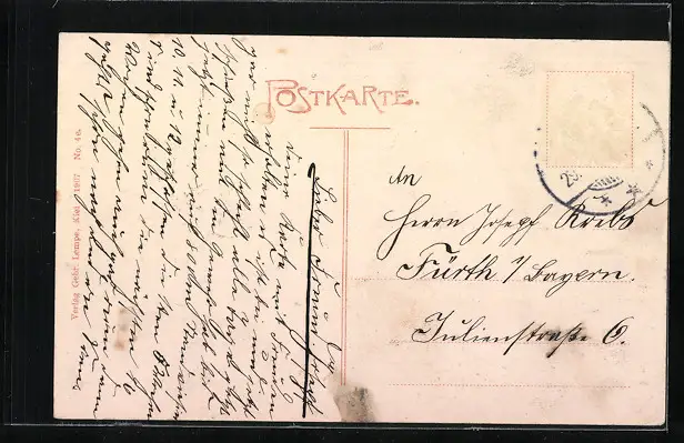 alte Ansichtskarte, gelaufen, Briefmarke entfernt, guter Zustand