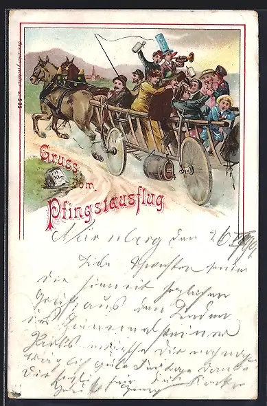 AK Gesellschaft bei einem Pfingstausflug mit einer Kutsche
