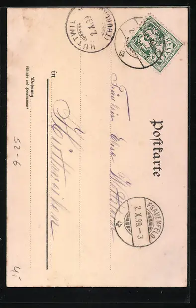 alte Ansichtskarte, gelaufen 1899, Einriss unten mittig, guter Zustand