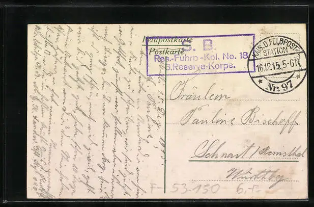 gelaufen als Feldpost 1915, Stempelspur, guter Zustand
