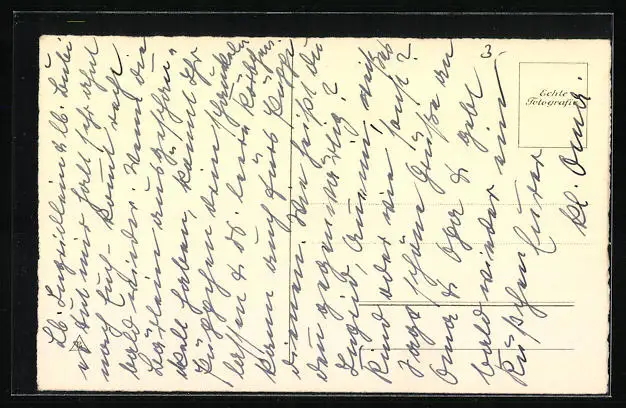 Personenbezogene Daten auf der Rückseite der Karte wurden durch blauen Textmarker unkenntlich gemacht. Die blauen Stellen sind auf die Vorderseite durchgeweicht und wirken sich negativ auf das Postkartenfoto aus