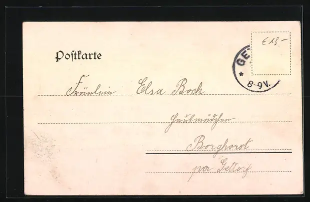 alte Ansichtskarte, gelaufen, Briefmarke entfernt, guter Zustand