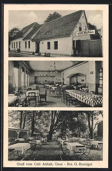 AK Geuz, Café Anhalt, Speisesaal, Garten-Caféterrasse