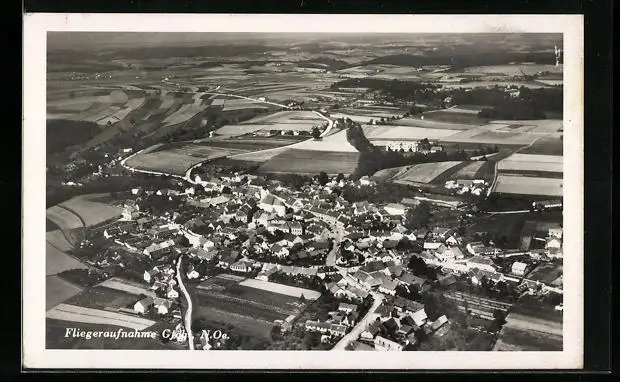 AK Gföhl, Ortsansicht mit Feldern vom Flugzeug aus
