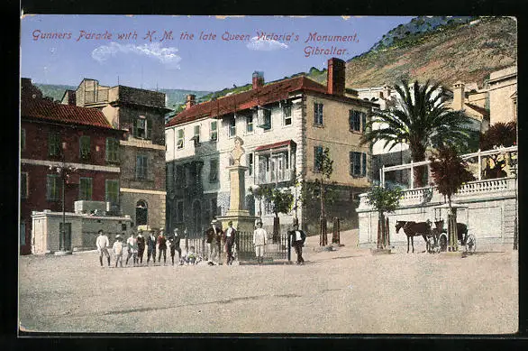 AK Gibraltar, Gunners Parade with H. M. the late Queen Victoria`s Monument