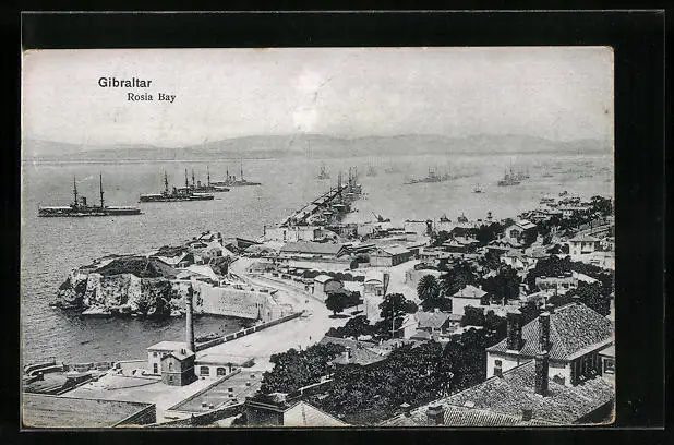 AK Gibraltar, Rosia Bay with ships seen from the town