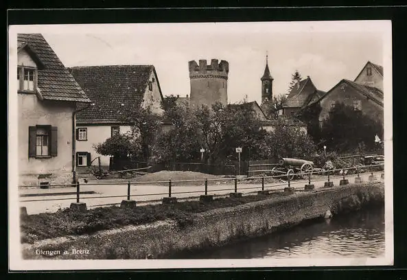 AK Giengen a. Brenz, Uferpartie mit Turm