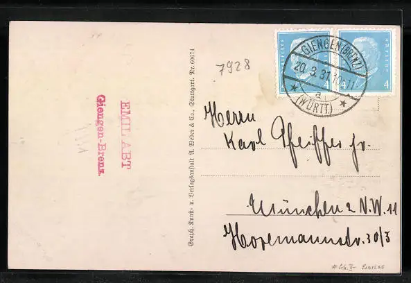 alte Ansichtskarte, gelaufen 1931, Einriss re. mittig, guter Zustand