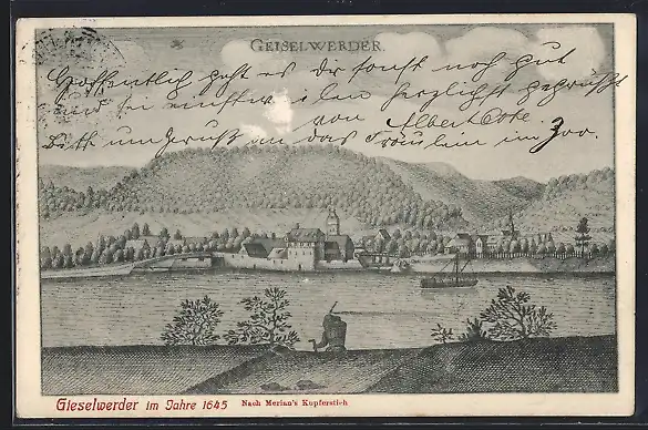 AK Gieselwerder, Ansicht von 1645 nach Merian