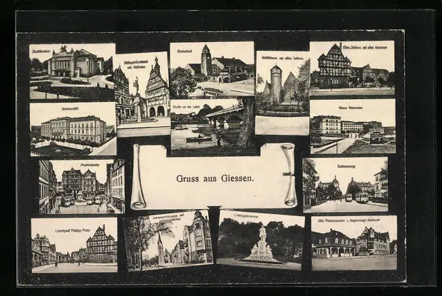AK Giessen, Bahnhof, Neue Kaserne, Liebigdenkmal